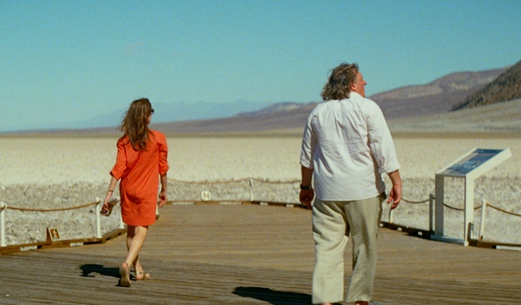 À la manière qu’il avait déjà placé l’écrivain Michel Houellebecq en situation de déphasage complet dans des circonstances certes moins dramatiques, le réalisateur Guillaume Nicloux renouvelle cette idée en amenant dans la Vallée de la Mort aux États-Unis deux monstres sacrés du cinéma français : Isabelle Huppert et Gérard Depardieu. Pour ce couple aujourd’hui séparé, il ne s’agit pas d’un enlèvement, ou alors une sorte de rapt spirituel ou métaphysique, organisé par leur fils Michaël qui s’est donné la mort six mois plus tôt à San Francisco. Le film s’installe à la lisière de la réalité et du fantastique. Le couple se prénomme Isabelle et Gérard, lui est reconnu comme comédien célèbre par un touriste local et il est bien sûr impossible de ne pas faire le rapprochement avec l’histoire personnelle et tragique de l’acteur du Dernier Métro. Nullement embarrassé d’un background qui pourrait appesantir ou orienter son travail, le réalisateur de La Religieuse nous entraine à sa suite sur les territoires étranges du surréalisme et du spirituel, en tournant le dos au cartésianisme, en saupoudrant le tout d’un humour réjouissant et inattendu. Comme il fait coexister des registres différents, Guillaume Nicloux alterne les séquences en plein désert sous une chaleur accablante où tout peut survenir (un bolide sur une route, un animal sauvage, des randonneurs) et celles des hôtels et restaurants où s’arrêtent Isabelle et Gérard.