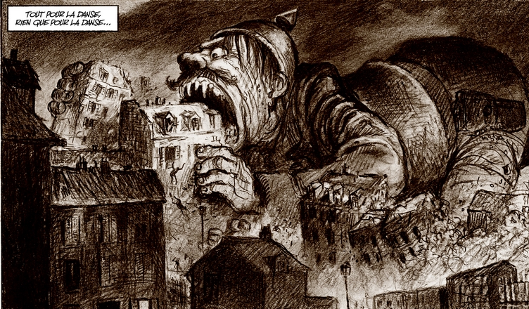 Dans un noir et blanc au crayonné, vif, avec des personnages aux traits caricaturaux, offrant des expressions de visages très accentuées, parfois effrayantes, les deux dessinateurs Paul et Gaëtan Brizzi donnent vie au récit de Malavoy avec force et talent, rendant bien la bien noirceur et la folie de ces hommes et de cette période trouble. Côté récit, la bonne idée est d’avoir choisi de mettre en scène Céline lui-même pour raconter ces quelques mois incroyablement agités et totalement rocambolesques.
