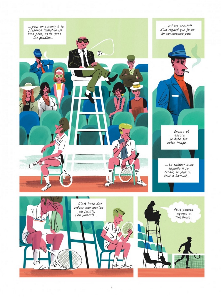 Une mise en abyme subtile et passionnante dessinée avec brio par Alexandre Clérisse qui nous offre là des planches remarquables et pleines de références allant des dessins animés d’Hanna-Barbera à Jacques Tati en passant le Pop Art et la BD psychédélique que l’on voyait fleurir à l’époque dans le mensuel Pilote.