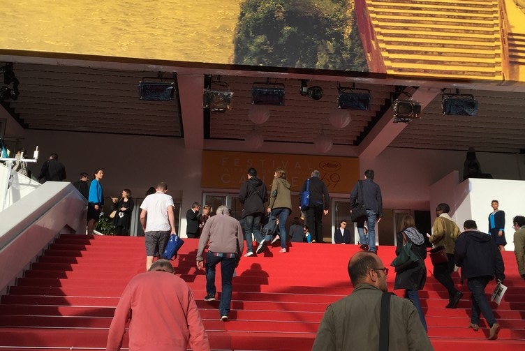 Le moment clé à Cannes, c’est la séance de presse de 8h30, celle où les journalistes du monde entier se retrouvent pour voir le film du jour en compétition, celui dont on va parler abondamment dans les médias durant les heures qui suivent. C’est un ballet étonnant auquel on assiste et auquel participe d’ailleurs volontiers, où l’on voit arriver, d’un pas pressé, des centaines d’hommes et de femmes, montant 4 à 4 les fameuses marches pour aller sa caler dans les 2300 fauteuils du Grand Théâtre Lumière.