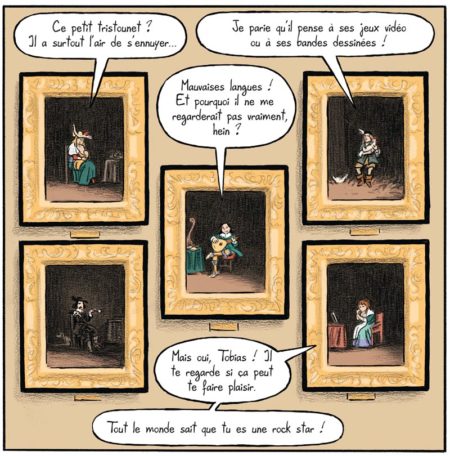 Partie prenante du projet avec les Éditions Delcourt, le Musée du Louvre ne s’y est pas trompé. Avec ces Tableaux de l’ombre, Jean Dytar réussit à nous émerveiller en piochant dans ses souvenirs d’enfance. Marqué par une œuvre d’Anthonie Palamedes, L’Allégorie des cinq sens, à un moment où il s’était perdu lors d’une visite du célèbre musée avec sa classe, il lui redonne une visibilité qui, selon lui, n’est pas moins justifiée que d’autres peintures. Lorsque l’auteur avait découvert les personnages des cinq petits tableaux composant l’œuvre, il se souvient qu’il s’était senti d’un seul coup moins seul, comme si une connivence s’était établie. Pour le petit Jean, ces minuscules êtres, « tout petits, tout moches », étaient littéralement vivants ! C’est donc, on l’aura compris, le point de départ de cette bande dessinée extrêmement attachante.