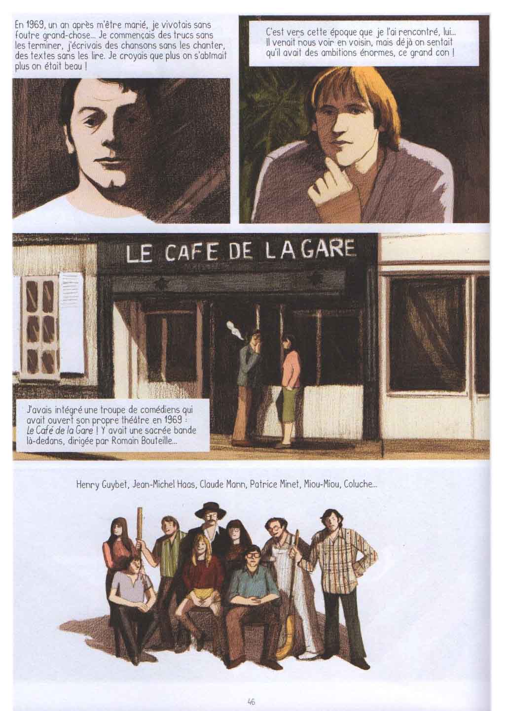C’est LF Bollée, scénariste de Terra Australis et de La Bombe, une œuvre monumentale sortie récemment et acclamée par la critique et le public, qui s’est investi dans le projet. Fan de la première heure, Bollée a choisi comme narrateur du récit Dewaere lui-même. Celui-ci évoque ainsi son propre parcours depuis la tombe, ce qui nous rend encore plus proche ce comédien unique et hyper attachant. Le scénariste a évité le piège de la biographie scolaire propre à ce genre d’ouvrage, en évitant toute linéarité et en insérant des flashbacks relatant des anecdotes sur le jeune Patrick, lorsqu’il s’appelait encore Bourdeaux. En effet, ce patronyme n’était pas celui de son père biologique, qui avait abandonné sa mère à peine enceinte, mais celui de l’ex-mari de cette dernière… Bref, une histoire compliquée qui n’a pas dû aider le jeune homme à se construire, d’où, fort logiquement, le choix d’un pseudo, ou plutôt de deux pseudos successifs, car avant d’être Dewaere, il fut Patrick Maurin. Au fil des pages, on voit défiler ses proches et ceux qu’il a cotoyé lors de tournages, Depardieu bien sûr, mais aussi Miou-Miou, Gainsbourg, Coluche, Lino Ventura, Bouchitey et d’autres, ainsi que plusieurs réalisateurs dont Bertrand Blier, Claude Sautet, Yves Boisset et Claude Miller. On se remémorera par ailleurs cette fameuse et troublante diatribe sur Mozart dans « Préparez vos mouchoirs » qui fait dire à Dewaere : « Tu parles ! Le pauvre mec, il est mort à 35 ans ! 35 ans ! Non mais tu te rends compte de la perte ?! Quelle époque de con ! On claquait pour un rien ! ». Quatre ans après le tournage, la faucheuse emportait l’acteur à l’âge de… 35 ans…