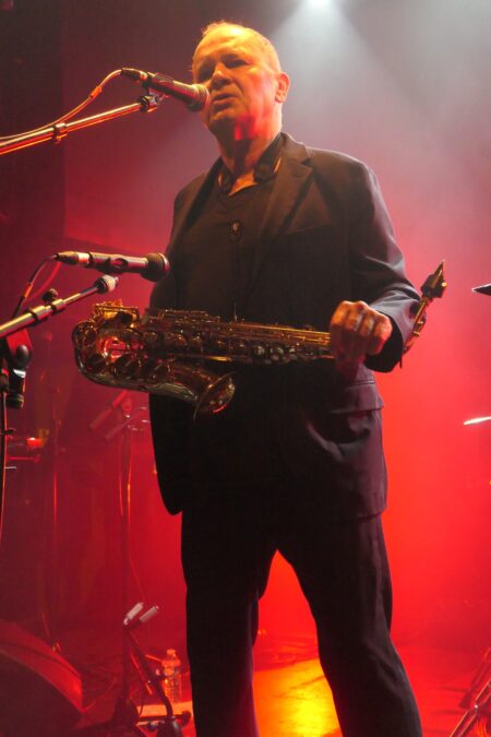 20h : Et puisqu’on parle de combattants, c’est Daniel Pabœuf, une figure importante de la scène rennaise depuis des décennies, officiant aux cuivres dans Marquis, qui ouvre la soirée. Dès le premier morceau, construit sur des boucles et mêlant riffs de saxo alto et chant, on est embarqué par la ferveur de Daniel : voici un homme qui croit en la musique, en son pouvoir, et même, vieille antienne qui ne semble plus autant à l’ordre du jour alors que le vent de la révolte souffle pourtant sur la France, au fait qu’il faut chanter la colère. Si le chant n’est pas le point le plus fort de Daniel, sa conviction porte ses paroles martiales de manière à la fois convaincante et touchante, sur des titres comme War (« We are all soldiers / we are all fighters ») ou encore sur le très beau L’Hélico au refrain parfait en notre ère d’abus anti-démocratiques en tous genres : « We want the truth / We want respect ». A noter, dans un registre bien différent, une reprise réussie – en tous cas pour les analphabètes que nous sommes en matière de jazz – du Lonely Woman d’Ornette Coleman (salué par un « C’est magnifique ! » venu du public). Pabœuf termine sa demi-heure de set sur I’m a wreck, chanson ironique (?) ou peut-être désespérée. De l’emphase bien placée, du talent et un esprit indie et rebelle qui ne s’use que si on ne s’en sert pas : une belle introduction à cette soirée rennaise…