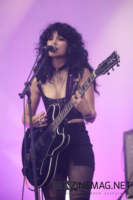 Mais évidemment, même si le groupe s’est considérablement « amolli » par rapport à ses grandes années, les « Dandys » sont des malins, et pas seulement parce qu’ils jouent désormais dans l’obscurité ou dans un halo de lumière rouge ou bleue empêchant qu’on distingue réellement leur âge. Il suffit qu’ils se mettent à débiter leurs hymnes d’antan, dans une sorte de « best of » porté par l’enthousiasme de la foule du festival, pour redevenir l’espace d’une heure et demie les rois du rock psyché, version décadente. Et puis Zia est quand même allée faire son tour de surf sur les bras des festivaliers, alors !… Après, on peut trouver ça plus très passionnant, mais il est difficile de nier leur savoir-faire !