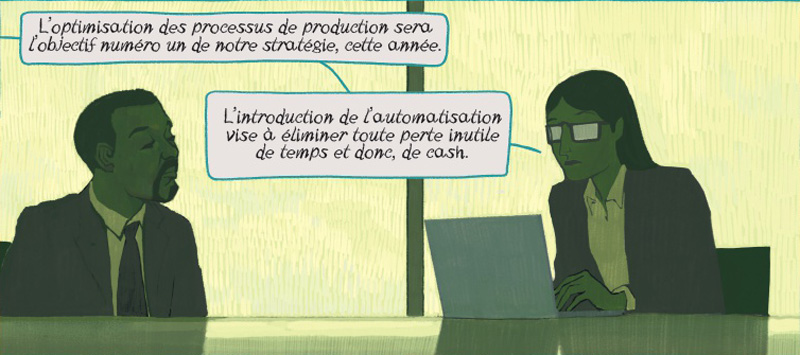 Pour ce qui est de la partie narrative, on pourra toutefois s’avouer un brin désappointé. L’idée de départ, celle consistant à faire jouer à Eustis, avec qui on avait fait connaissance dans Le Dieu vagabond, le rôle de baby-sitter de la progéniture du dieu Pan, est pour le moins originale. Car on l’apprend au début de l’histoire, notre satyre n’a pas réussi à retrouver les siens contrairement à ce que laissait croire la conclusion du dernier volet. Il va donc continuer à errer dans le monde terrestre des humains déshumanisés. C’est ainsi que le fils de Pan (qui n’a pas de nom…) va être catapulté sur Terre par sa mère Séléné, le but étant de lui faire mieux appréhender sa place « dans l’ordre des choses » sous la tutelle d’Eustis, à son corps défendant. Les deux personnages vont vivre alors une aventure empreinte d’un onirisme puissant au beau milieu d’un monde rationnel transformé par l’Homme en enfer de froideur techno-consumériste, incarné par le personnage un rien caricatural de Zoé, fille du Professeur que l’on retrouve également dans cette suite.