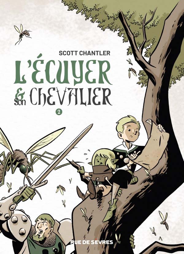 Rue de Sèvres propose le second et dernier volume des exploits de l’Écuyer. Le trait est moderne, précis et très agréable. Les visages sont bien croqués et toujours très expressifs. Si la première partie confronte nos héros à l’ennui et à la peur, la seconde brise la monotonie avec une bataille épique entre deux chevaliers, avant de les réconcilier quand ils doivent faire face à une meute de terribles gnolls. Pas trolls, des gnolls ! Qu’est-ce que c’est ? Lisez, vous saurez.