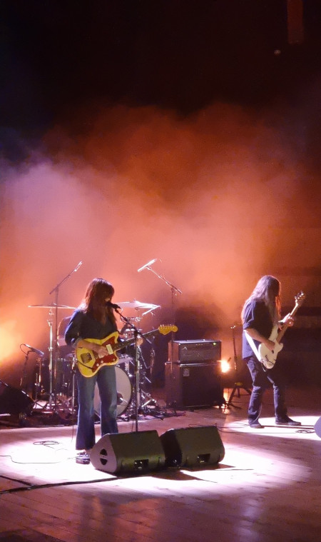La musicienne essaye de réchauffer l’ambiance et propose au public de se lever et danser pour celles et ceux qui souhaitent, dès la fin du troisième morceau : le succès est mitigé, la configuration n’est pas idéale pour cela, qu’à cela ne tienne, les décibels et l’intensité de l’interprétation serviront à combler la distance entre scène et spectateurs. Tout, ici, présente un enjeu, une intensité, rares, avec simplicité, sans apprêt. La chanteuse de Jacksonville est revenue d’entre les morts – celles de Steve Albini, de Philippe Couderc, boss du label bordelais Vicious Circle qui l’a signée il y a près d’un quart de siècle, mais aussi la sienne, suite à la découverte d’une maladie auto-immune (un diabète) qui a failli lui être fatal – pour accoucher de Reservoir of love, son treizième album, sorti en 2025. Et cela s’entend, sur enregistrement comme sur scène.