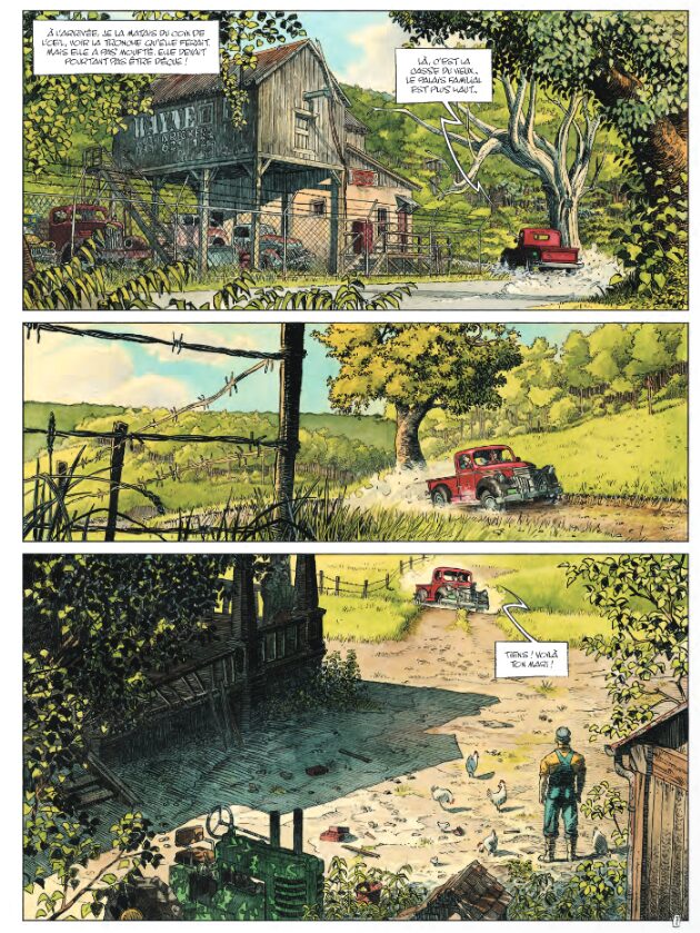 Si on ajoute que la famille Wayne est régulièrement visitée par les gens du shérif et même les agents du FBI pour ses divers petits trafics, on pourrait penser que tous les ingrédients d’un roman bien noir sont alors réunis. Et on aurait bien raison… Mais « on était ni au bout de nos surprises, ni de nos peines ! ». Dans ce village perdu de fermiers, « quand t’en peux plus, tu prends un flingue ou une guitare ». Rodolphe et Dubois ont choisi pour nous : ce sera la guitare.