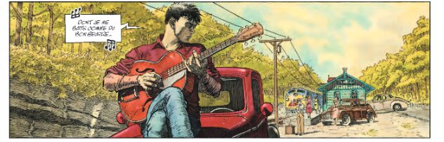 L’Amérique rurale et profonde, celle de Steinbeck ou de Faulkner, où il ne fait pas bon vivre mais où, dans les années 50, le rock’n roll apporte quelques lueurs d’espoir. Entre drame familial et guitare salvatrice, Rodolphe et Dubois signent un récit vibrant et sensuel.