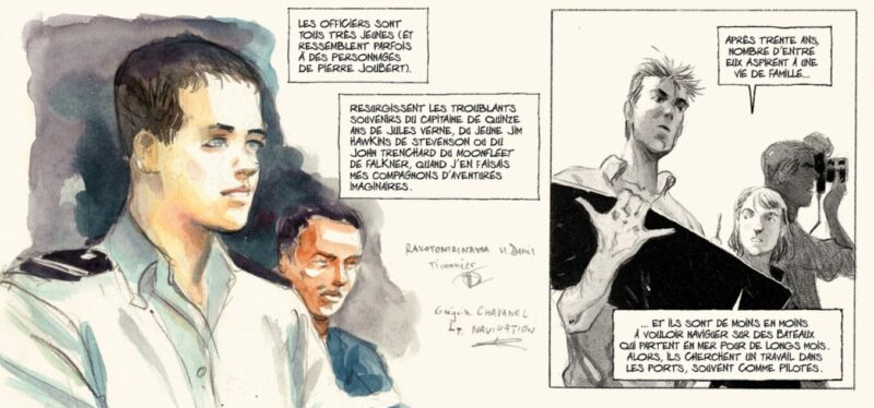 Le « journal de bord » d’Emmanuel Lepage est au choix : une aventure, un voyage, un poème, un livre d’images, une expérience… « Ce qui est étrange avec le voyage, c’est qu’on ne comprend qu’après, et encore pas toujours, ce qu’on est allé chercher ».