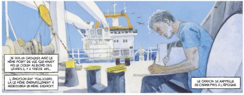 Après son premier voyage de 2010 (qui n’était qu’un « bref » aller-retour), l’auteur a longtemps hésité avant de reprendre la mer : « Que pouvais-je vraiment dire de plus ou de différent. Revenir au même endroit une seconde fois n’aurait pas la puissance et la magie de la découverte ».