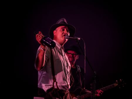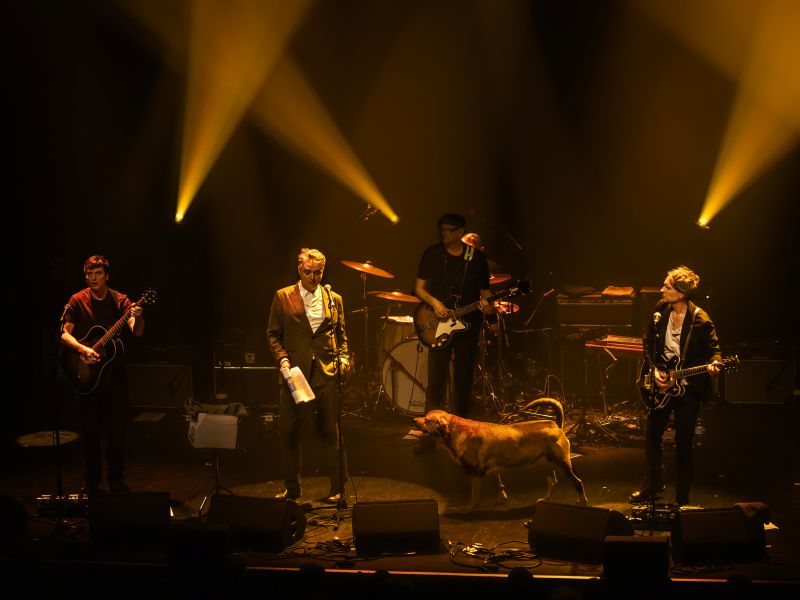 Quand Pete Doherty s’avance enfin sur scène, il est, comme à chaque fois, suivi de ses deux chiens, étonnamment sages étant donné le bruit et la chaleur de la salle. Mais Doherty est surtout accompagné d’un groupe formidable au sein duquel on retrouve son épouse Katia de Vidas (claviers), les guitaristes Mike Moore (qui accompagne aussi Liam Gallagher) et Jack Jones (du groupe Trampolene), le bassiste Mark Neary (vu aux côtés de Baxter Dury) et Mike Joyce, le légendaire batteur de Smiths.