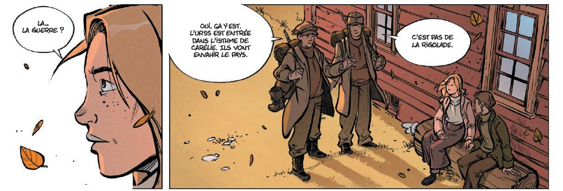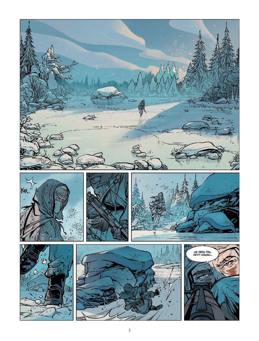 Le petit Riku Virtnanen de cette BD a une enfance difficile, c’était le mal aimé de sa famille. Mais en 1939 dans la petite Finlande, l’immense Armée Rouge arrive et l’hiver aussi. La mobilisation finlandaise est générale, ses frères sont rapidement tués et le courageux Riku reste seul sur le front à tendre des embuscades aux soviétiques. Le soldat Riku s’aguerrit et devient un terrible sniper, du genre à mâcher de la neige pour ne pas trahir sa position par la vapeur de son souffle. Les planches de la BD affichent le score de ses tirs au but : 6, 11, 27, 88, 200…
